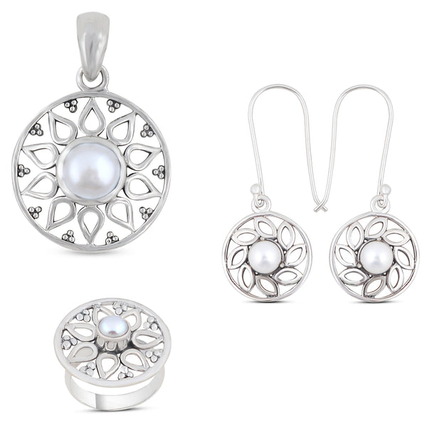 Jewelry Type - Pendant Set Product Weight (gram) - 19.20 Stone - Pearl Stone Size - 06 x 06 mm Metal - 925 Sterling Silver Metal Stamp - IG925 Ring Size - 8 Pendant Dimension -...